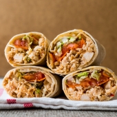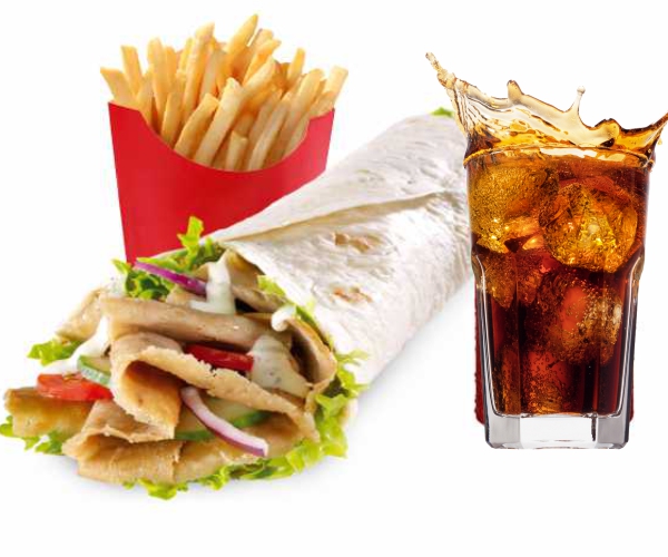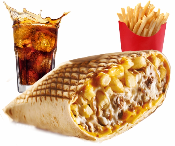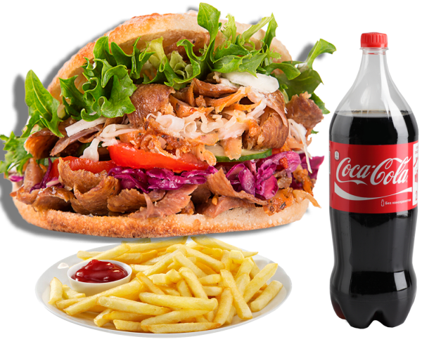 Pan Tostado, Ternera, Pollo o Mixta, Patatas, Ensalada, Arroz, Queso de Oveja, Falafel y Salsas