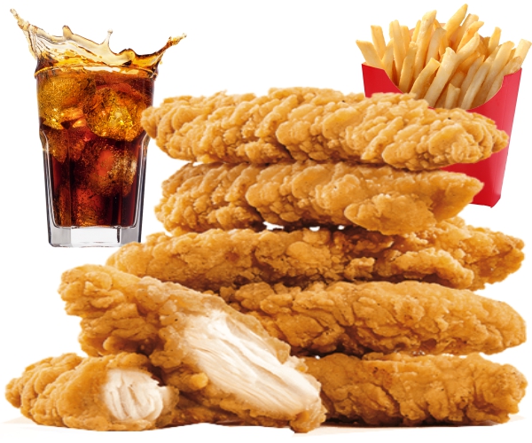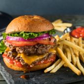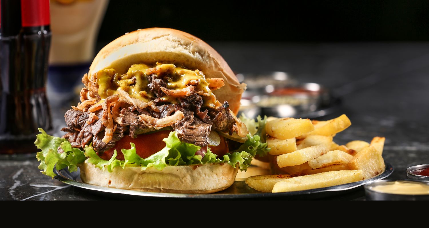 Pan Tostado, Ternera, Pollo o Mixta, Patatas, Ensalada y Salsas